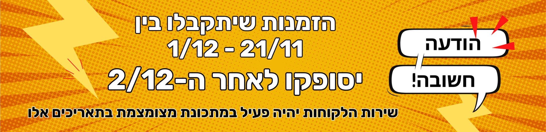 כן. אנו נשלח אליכם את המוצרים שתבחרו עד לדלת הבית עם שליח וזמני אספקה מהירים במיוחד של 1-4 ימי עסקים לכל חלקי הארץ